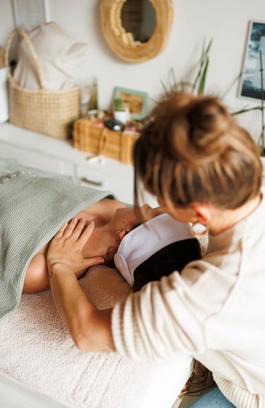Les premières pressions, douces et enveloppantes, suivent le rythme apaisant des vagues, réveillant en douceur les tissus du visage. Puis l'enchaînement précis et raffiné alternant lissages profonds, pétrissages subtils et percussions délicates pour redonner éclat & tonicité à la peau.