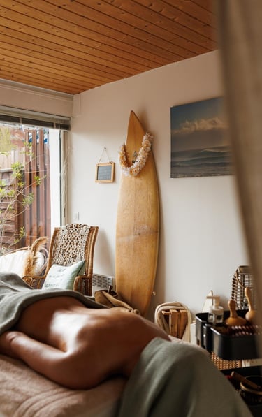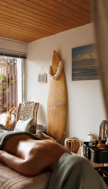 Ce massage cible intensément le haut du corps : cervicales, trapèzes, épaules et nuque. Il libère les tensions, favorise une meilleure mobilité, et restaure l’équilibre musculaire des sportifs comme des esprits actifs et des amoureux de l'océan.